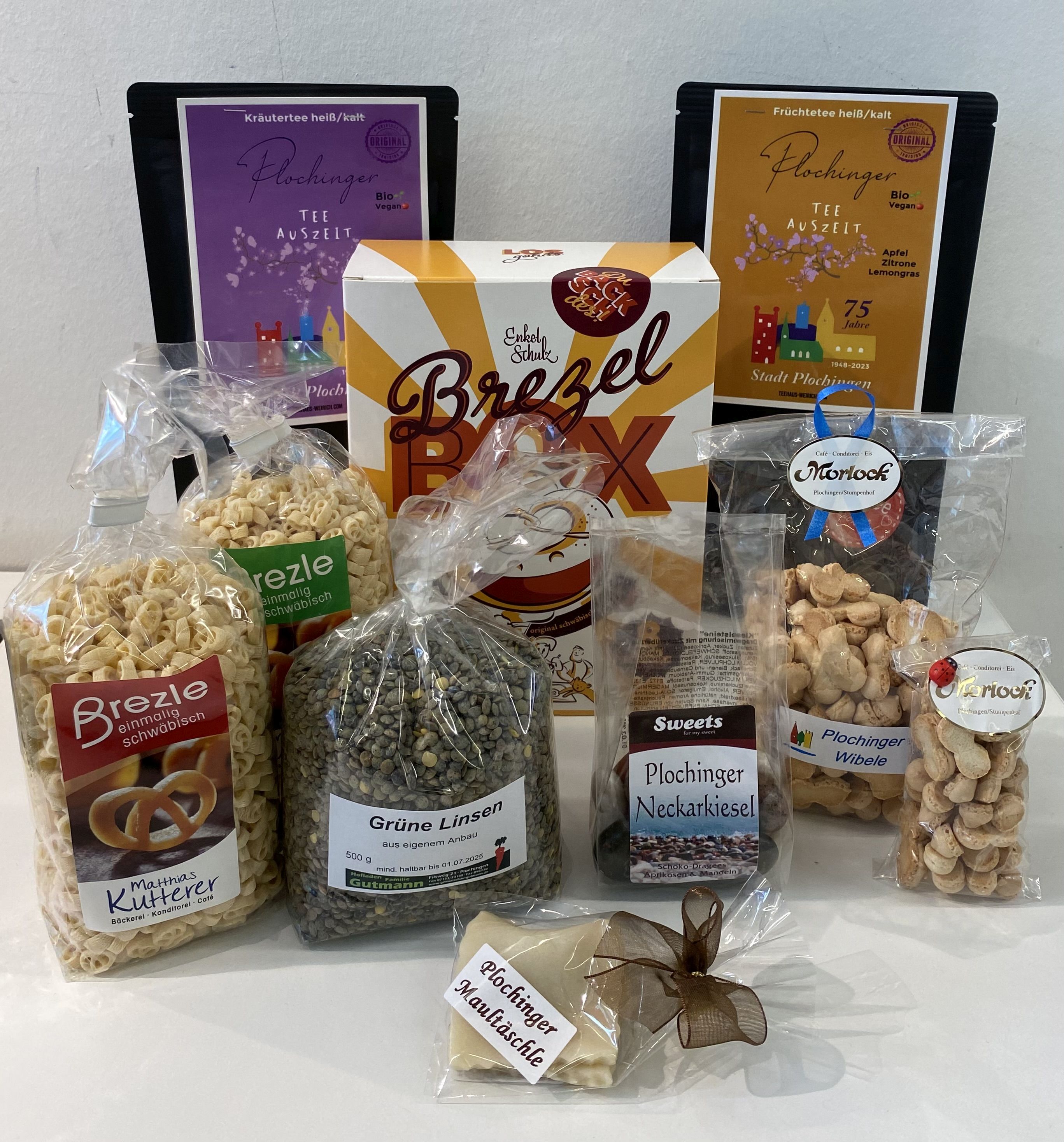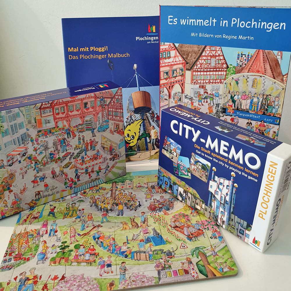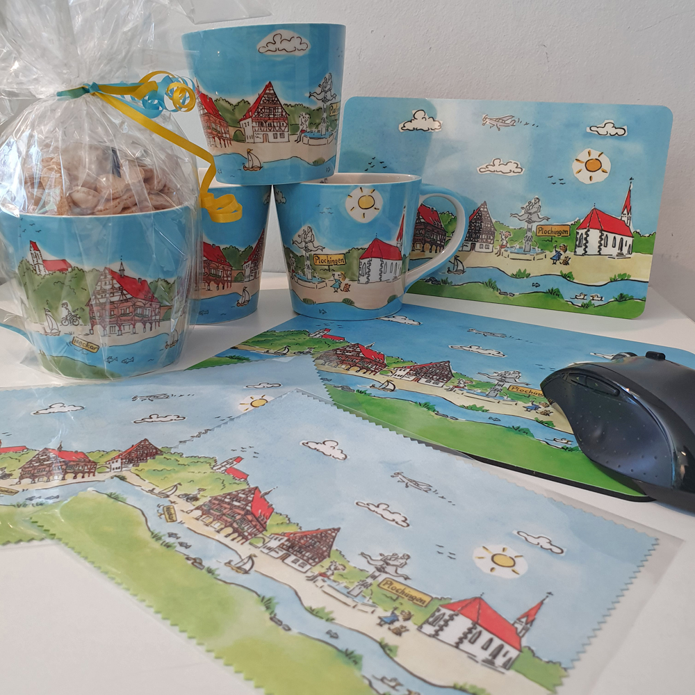 Im Shop der PlochingenInfo findet man Souvenirs und regionale Produkte aus Plochingen. Hier gibt es Plochinger Tassen, Frühstücksbrettchen, Mouse-Pads, Magnete, Bücher, Spiele, Produkte nach Hundertwasser, viele Köstlichkeiten wie zum Beispiel Säfte, Aufstriche, Süßigkeiten ...und vieles, vieles mehr! Ein kleiner Auszug aus unseren Produkten, die in der PlochingenInfo erworben werden können finden Sie hier: