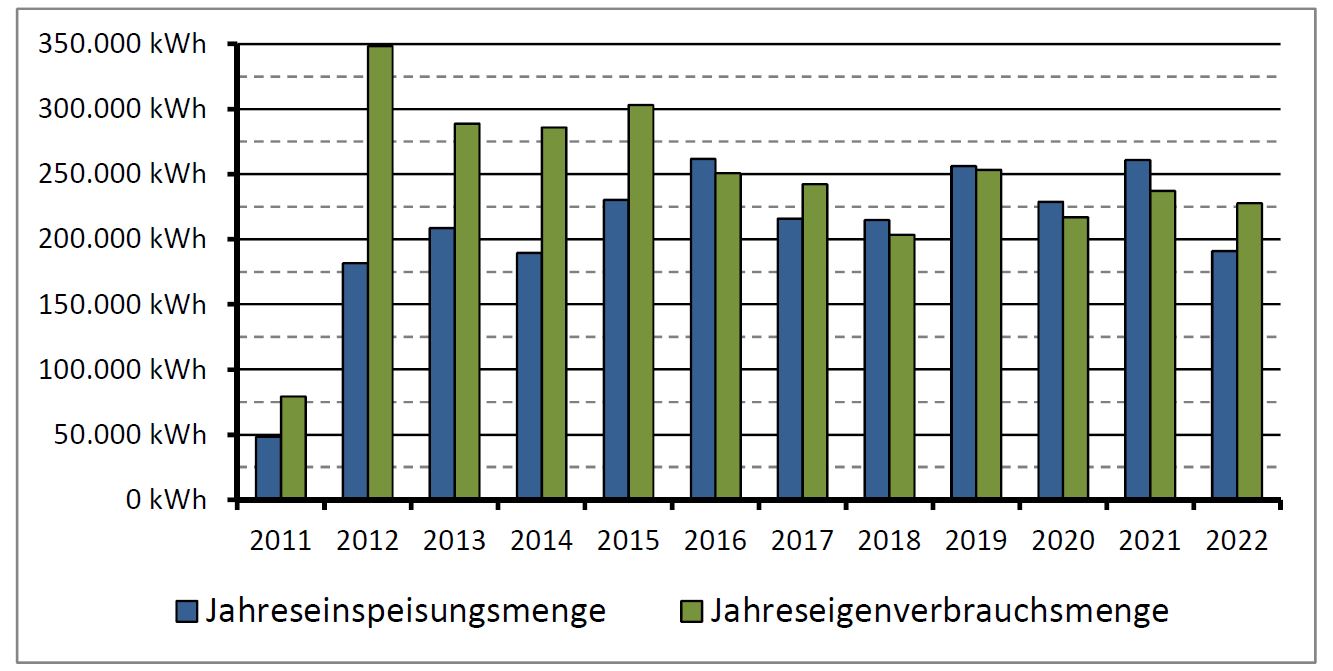 Jahreseinsparungsmenge und Jahreseigenverbrauch 2011-2022