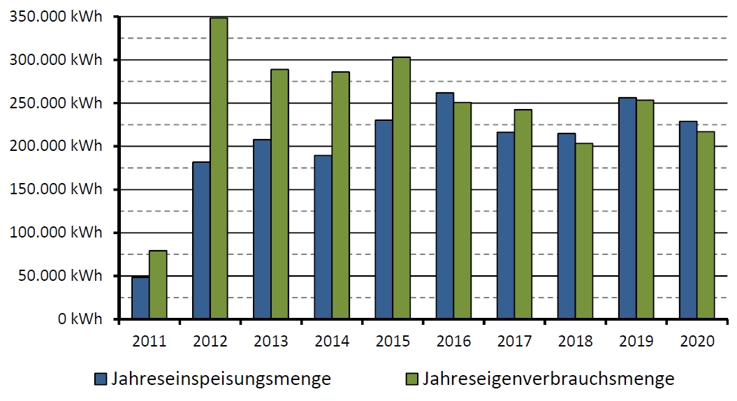 Tabelle mit der Jahreseinspeisungsmenge und Jahreseigenverbrauchsmenge