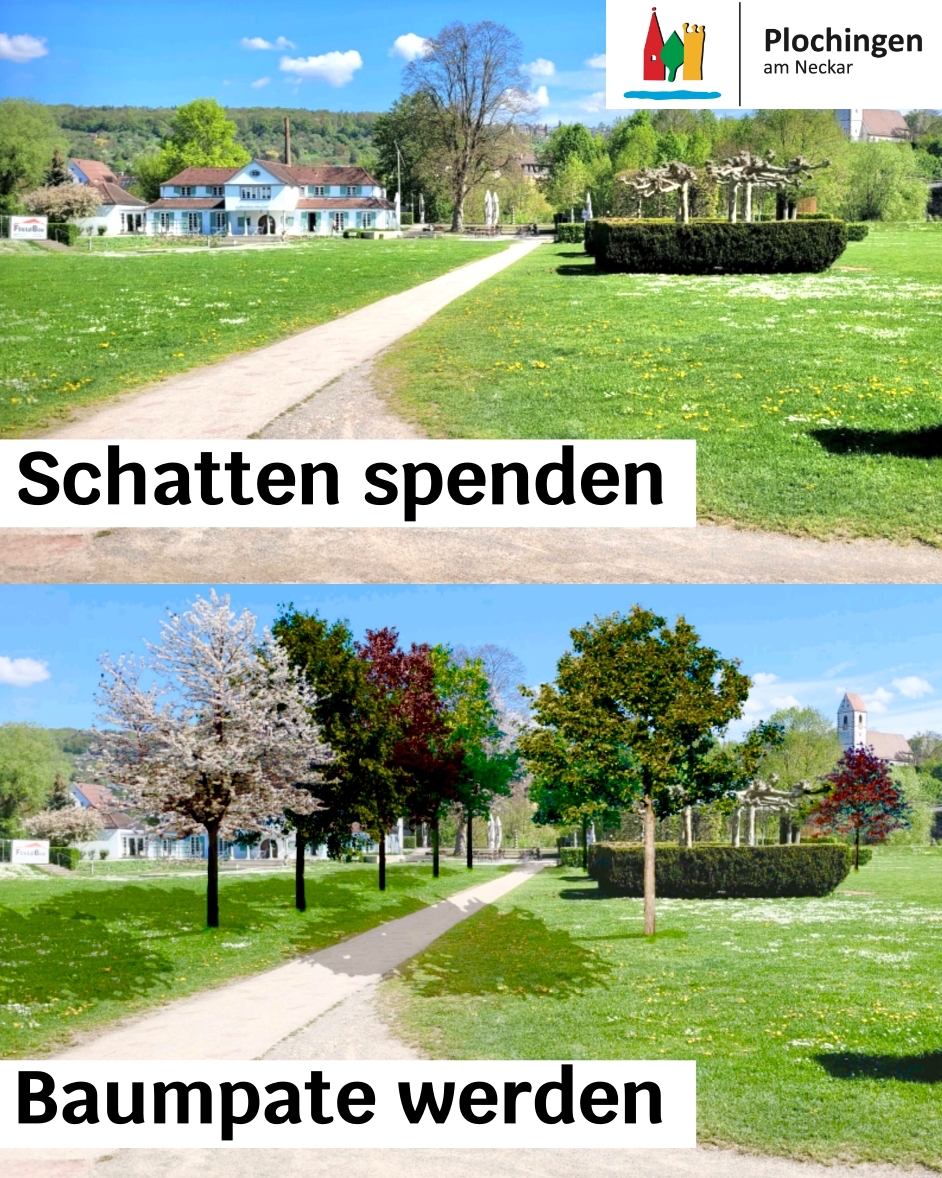 Die Stadt Plochingen wird im Bruckenwasen über 20 Bäume pflanzen. Um die Planungs-, Pflanzungs- und Pflegekosten für dieses wichtige Projekt zu stemmen, beantragt die Stadt Fördergelder, finanziert selbst und bietet engagierten Plochingerinnen und Plochingern Baumpatenschaften an.